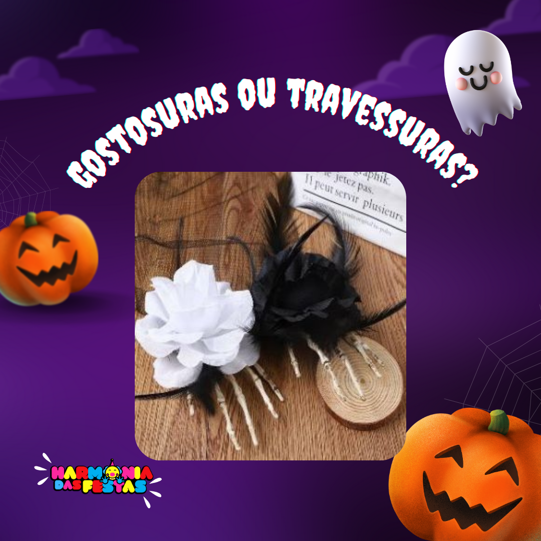 / Decoração Mão Esqueleto e Flor